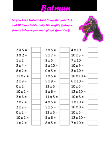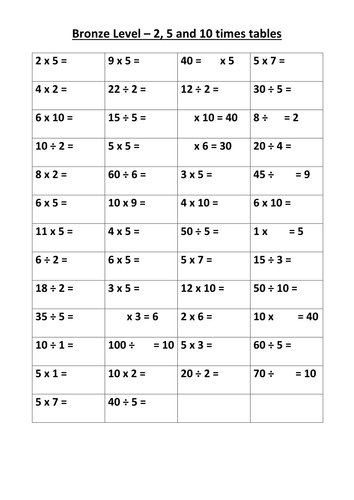 2 5 And 10 Times Tables Test Worksheets Teaching Resources